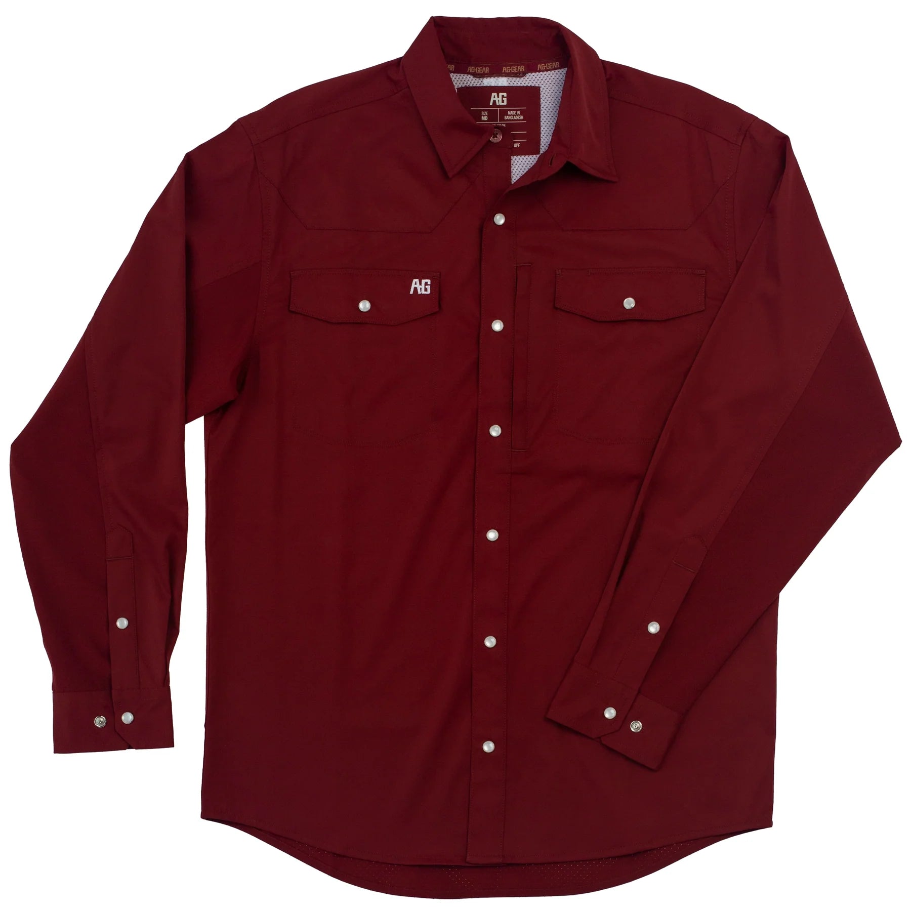 Built tough for demanding work, this western long sleeve shirt is lightweight, breathable, and equipped with UPF30 sun protection. Stretch fabric with laser-perforated underarms ensures comfort, while stain-resistant, antimicrobial properties keep it fresh. Practical features like pearl snap chest pockets, a hidden zipper phone pocket, pen holder, and sunglass cleaner make it as functional as it is durable.
